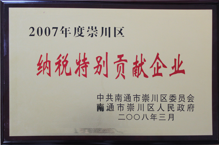 2007崇川區(qū)納稅特別貢獻(xiàn)企業(yè)